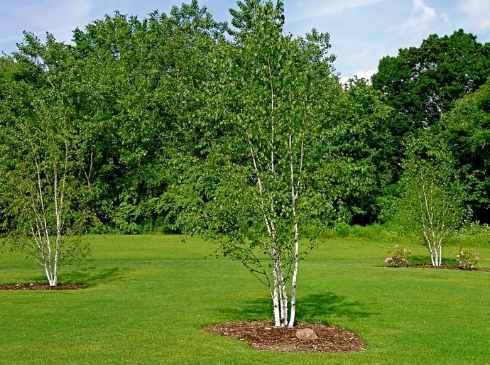 - святкового вигляду з білими стовбурами і ажурною кроною дозволяє візуально розширити простір навіть дуже невеликих ділянок;