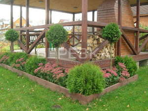 Необхідно визначити основу всього дизайну присадибної території і в подальшому оформляти всю територію, як би обігруючи оригінальну стилістику оформлення.- Відокремити зону відпочинку від городу можна за допомогою строкатої квіткової стіни або живоплоту з туї та інших аналогічних рослин.