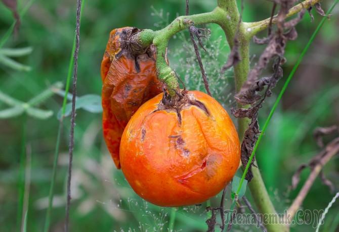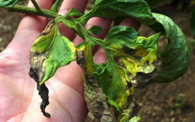Серед хвороб томатів однією з найпоширеніших вважається фітофтороз або фітофтора. При появі цього грибкового захворювання на томатних кущах можна відразу помітити його ознаки – дрібні плями темного кольору на листках, бурі і підсихають листя, а також почорніння окремих ділянок стебла. Згодом починають чорніти і самі плоди, а кущ в'яне і засихає.