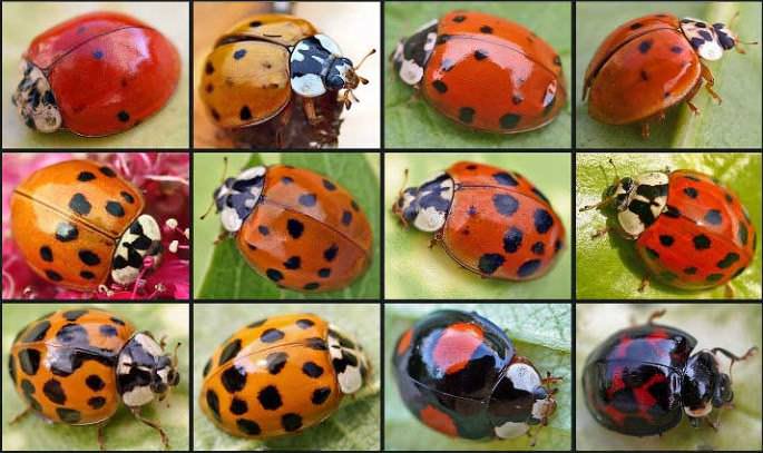 Божа корівка може бути не тільки червоним або помаранчевим. Корівка десятіточечная має темно-коричневий колір, четирнадцатіточечная – жовтий, точкова і зовсім чорна, а штріховатоточечная – чорна в жовту цяточку. Є представники виду, яких дуже легко сплутати з іншими жуками. Більш того, не всі вони гладкі, є дуже навіть волохаті види комахи, що для нас незвично.