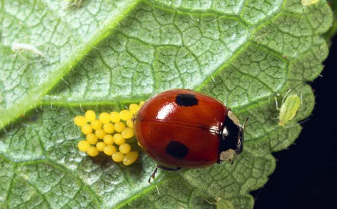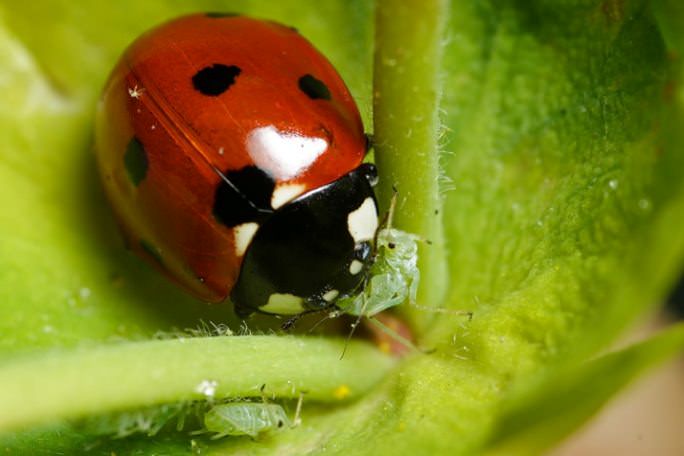 - попелиця – улюблена їжа яскравого жучка. Цей шкідник харчується соками рослин, а ще тля переносить вірусні захворювання (так що шкода цих паразитів немає перебільшений). Вас також може зацікавити стаття, в якій розповідається про те, як можна позбутися від попелиці і чим вона небезпечна.