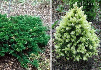 Серед малорослих кандидатів для облаштування бордюру можна виділити ялівець, пієріс з блискучою ланцетовидной листям, канадську ялину