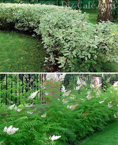 Облаштовуючи бордюри і створюючи огорожі висотою до 1 м, можна використовувати низькорослі чагарники: самшит, бересклет японський, смородина альпійська