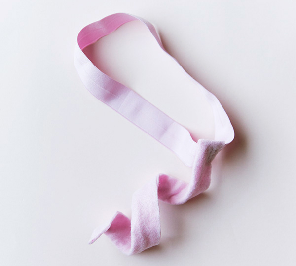Приклеюємо або пришиваємо хвостик до рожевої широкій резинці. Розмір гумки = обсягом талії дівчинки. Скручуємо хвостик, щоб було схоже на хвостик Хрюші.