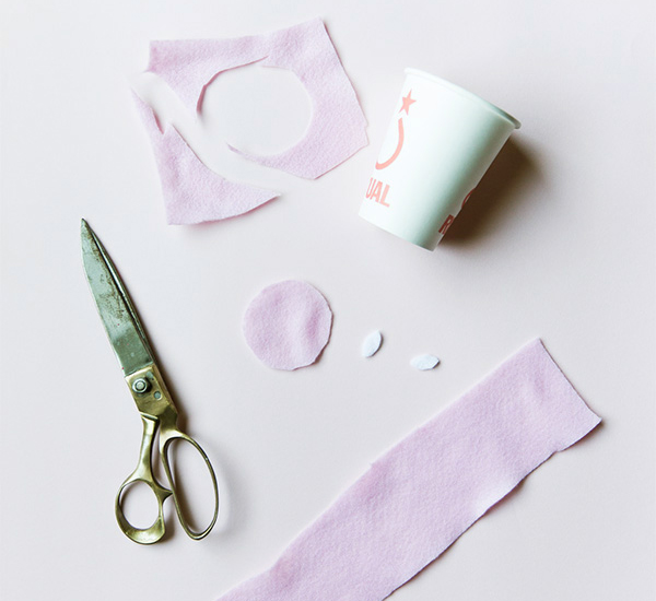 - рожевий фетр і маленький шматочок білого (можна замінити тканиною),