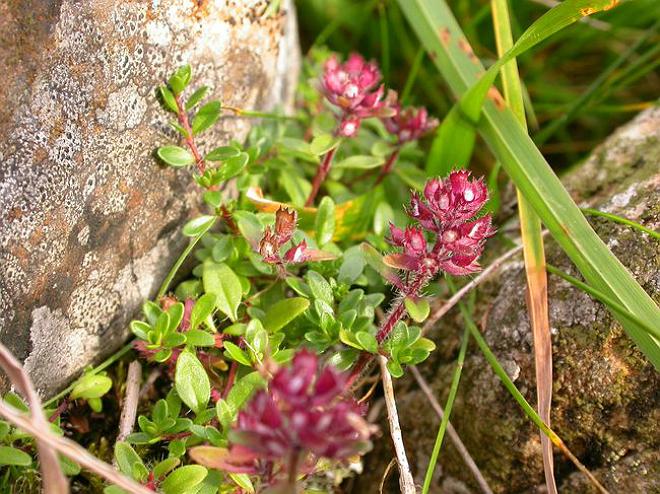 - чебрець звичайний – невисокий напівчагарник, висота пагонів досягає 15 см. Листя – маленькі, з опушенням на внутрішній стороні. Квітки можуть бути світло-ліловими, білими (сорт "Альба"), густо-червоними (сорт "Спленденс"). Він менш морозостійкий, ніж чебрець повзучий. У ландшафтному дизайні активно використовуються карликові сорти чебрецю звичайного, наприклад, "Елфін» – не піднімаючись вище 5 см, один саджанець утворює акуратну щільну зелену "подушку" діаметром до 15 см;