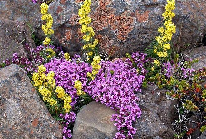 Чебрець часто висаджують на альпійських гірках, він добре виглядає в міксбордах або кам'яних садах, а так само як зелена окантовка кордонів доріжок і квітників.