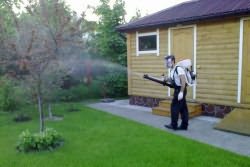 Вибравши, ніж обробити рослини від шкідників, використовуйте для обприскування ручний насос або обприскувач. Для того щоб розчин випадав на поверхню у вигляді дрібних крапель, слід наконечник апарату тримати на відстані близько 1 м від рослини.