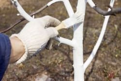 Для побілки стовбурів дерев традиційно застосовувалася гашене вапно. Але щоб товщина покриття складом була достатньою, білити стовбур необхідно двічі. В даний час використовуються нові засоби – побілки на крейдяній основі з додаванням мідного купоросу і клею ПВА. Такий склад краще знезаражує кору і тримається значно довше, незважаючи на весняні опади.