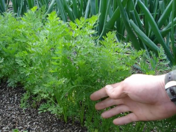 - Чергування рядів моркви з цибулею, кінзою, прікапиваніе зеленої бадилля помідорів, посипання міжряддя тютюном, нафталіном – сторонні запахи знижують ступінь ураження, маскуючи морква.