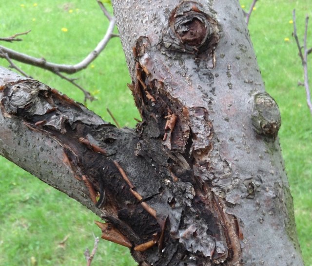 Спочатку з дерев злазить кора, на гілках і стовбурах утворюються тріщини і виразки, а потім починає чорніти і гнити сама деревина. Якщо уражено 50% дерева – лікувати його вже пізно. Тільки на стартовому етапі, коли хворі одна або кілька гілок можна встигнути оперативно вжити заходів. Надалі ж, дерево потрібно швидко викорчовувати і спалювати, поки хвороби не встигли поширитися по всьому саду.
