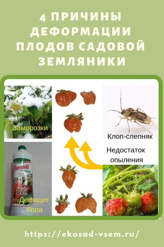 - Основні причини чому виростають ягоди полуниці неправильної форми