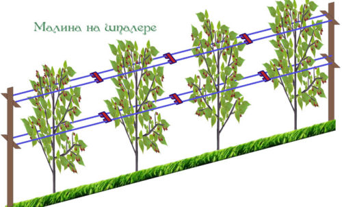- Так як чагарники малини виростають у висоту до 2 метрів, їм необхідна опора. Як цього підійдуть опорні стовпчики, розставлені з кроком 50 см і натягнута дріт між ними.