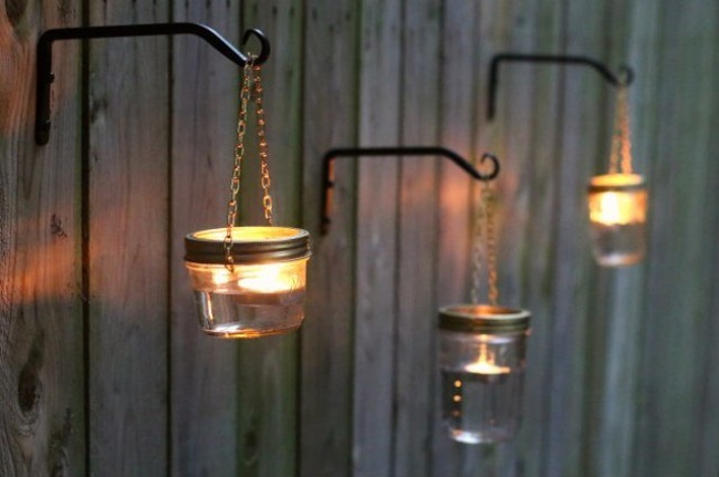 Свічки в саду завжди створюють неймовірно романтичну атмосферу. Якщо на вашому дерев'яному паркані на дачі буде прикріплено кілька гачків, то ви зможете підвішувати на них свічники.