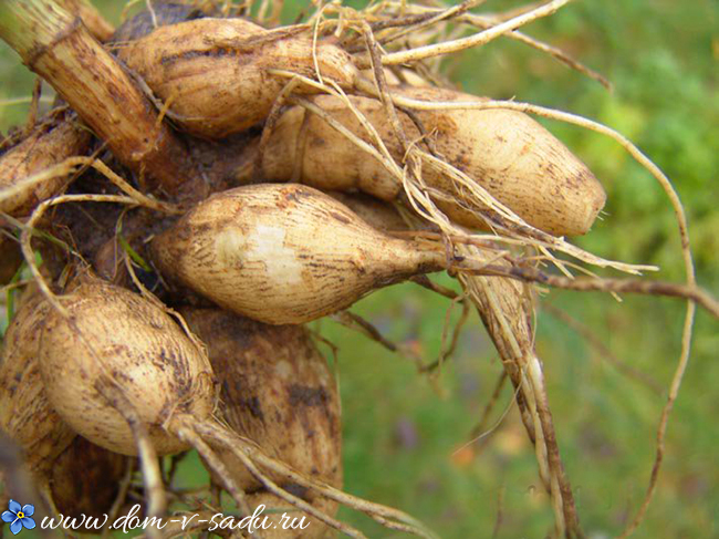 Прибирати ці квіти дуже рано не варто: підземна частина не визріє. Дуже зручно викопувати рослини за допомогою вузьких копальних вил – менше ризик пошкодити їх надземну частину. Але, якщо так складеться, що ви пошкодите рослина, то не варто засмучуватися. Засипте місце порізу товченим вугіллям або звичайною зеленкою.