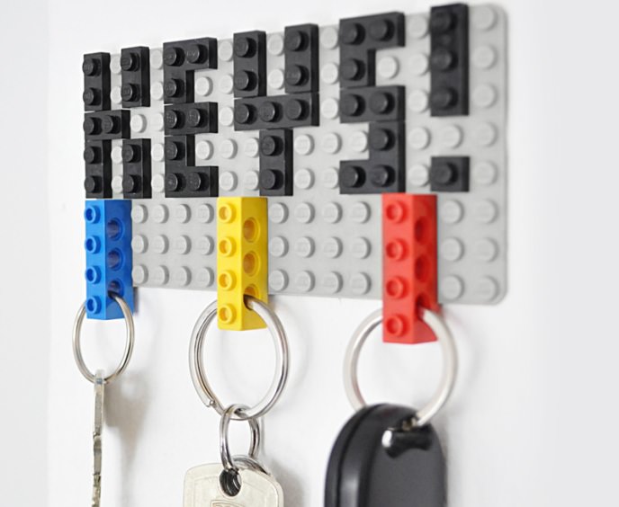Просто і швидко з деталей конструктора збирається ключниця. Прикрасити її можна фігурками у вигляді чоловічків-лего. Коли будь-якої чоловічок набридне, його можна замінити.