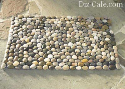 Викладати доріжку з морських каменів – справа досить складна, а от зробити з них килимок – просто, і виглядає він чудово. Вам знадобляться плоскі камінчики приблизно одного розміру, клей, ковролін (бажано тонкий), ніж.