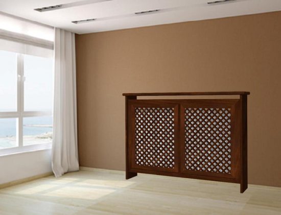 Класичний тип декоративного екрану для опалювальних радіаторів – решітка з натурального дерева. Її затребуваність не дивна, адже вона елегантна, довговічна, міцна і досить проста у виготовленні: