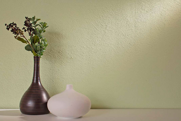 - Фактурний матеріал. Декоративність такого покриття полягає в можливості змішування кольорів і відтінків. Наприклад, для гри світла і тіні. Додатково ви зможете самостійно зробити фактуру стіни, задавши необхідний малюнок. Для цього використовується набір спецінструмент: штампи, валики, аплікатори.