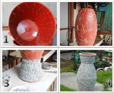 Купити декоративну вазу потрібного дизайну і розміру не завжди вдається, тому що цим ремеслом займаються лічені люди. А конструкції з натурального каменю і бетону до того ж завжди дороги. Але ефектний елемент ландшафту можна створити своїми руками, причому дуже легким способом.