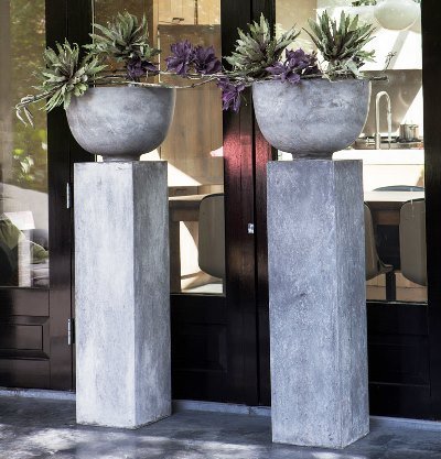 Монолітність бетонного п'єдесталу, строгі геометричні лінії і мінімум рослин в чаші – все це ознаки сучасної вази в дусі хай-тек