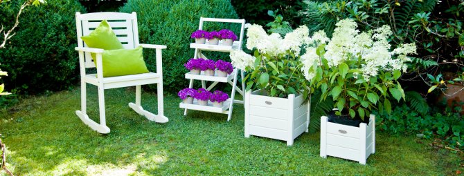 До речі, вази-саморобки вельми доречні і в сільських стилях, де весь ландшафт підкреслює фантазію господаря і не обмежений рамками стильових традицій. Саме в цих садах найкраще «приживаються» недорогі пластикові вази, судини, видовбані з дерева, плетені чаші. Їх не використовують порожніми, а заповнюють живими квітами, корчами, очеретами та ін. Правда, на зиму цей декор доведеться прибрати, так як дерево і пластик не володіють морозостійкістю, а від перепаду температур будуть лопатися або викручуватися.