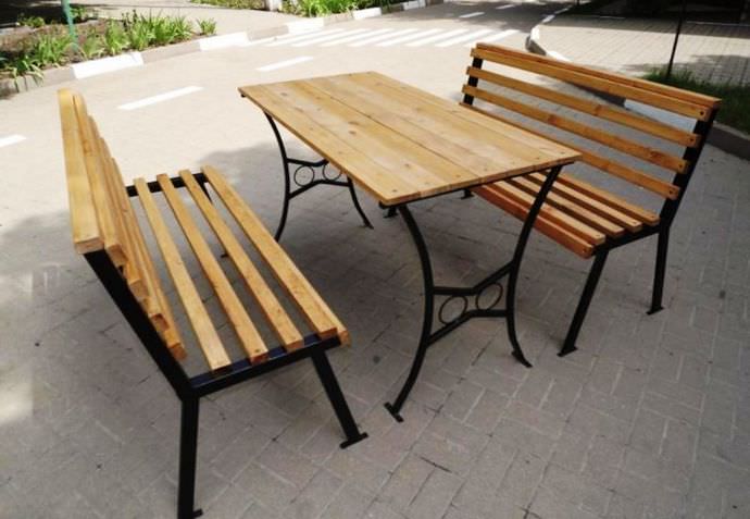 Сварка повинна проводитися акуратно, щоб не допускати утворення зварювальних наростів. Металевою щіткою зачищається вся конструкція, після чого проводиться обробка ґрунтовкою і фарбування. Після повного висихання фарби фіксується стільниця, яку також потрібно обробити спеціальними антисептиками, після чого покрити лаком або пофарбувати.