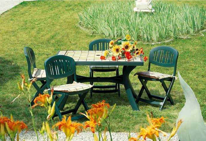 - пластмасові моделі є ідеальним варіантом для експлуатації на дачі. Переваги полягають у доступній вартості, відносної компактності і легкості. Як правило, випускаються круглої або овальної форми, і дозволяють розмістити приблизно шість-вісім чоловік. Незважаючи на стильний зовнішній вигляд, характеризуються не надто довгим терміном експлуатації. До недоліків можна віднести і схильність до руйнування в результаті негативного впливу прямих сонячних променів. Також легка конструкція може перевертати при сильних поривах вітру, необхідність використовувати під установку максимально рівну поверхню і схильність пошкоджень, що супроводжується швидкою втратою первісного естетичного зовнішнього вигляду;