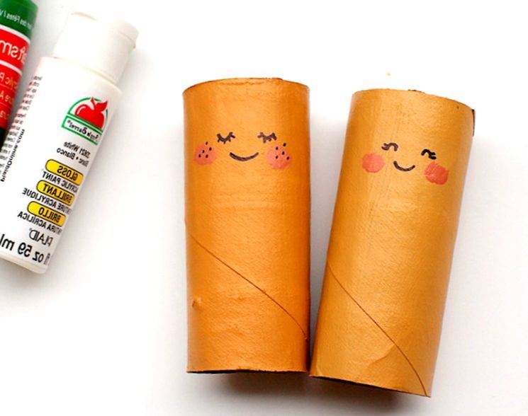 У цьому проекті ми почнемо з осіб, на обох рулончиках малюємо маркером оченята, щічки, посмішку і Попок. За ним ми будемо орієнтуватися з нарядами наших ляльок.