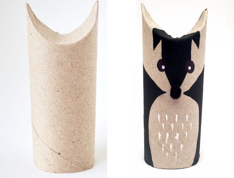 Насамперед беремо рулон від туалетного паперу або половинку від рулону з-під паперових рушників, і складаємо верхівку всередину бортиками, роблячи вушка нашим зверятам. Добре «пройдіться» пальцями по лінії згину картону, щоб вушка краще трималися.
