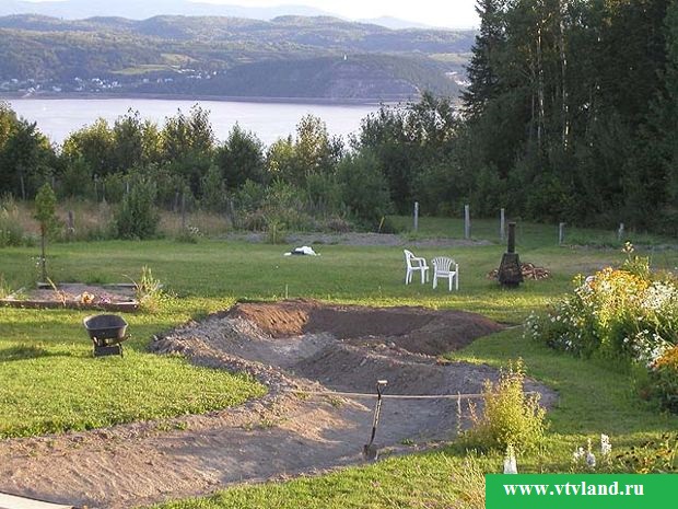 Все це означає, що при підготовці Вам доведеться, по-перше, викопати ставок або котлован, в якому буде закінчуватися біг води, а по-друге, поруч з руслом струмка знадобиться ще одна траншея, правда значно менших розмірів, яка за найкоротшим шляхом буде пов'язувати ставок і початок струмка. У неї Ви згодом прокладете труби або шланги насосної системи.