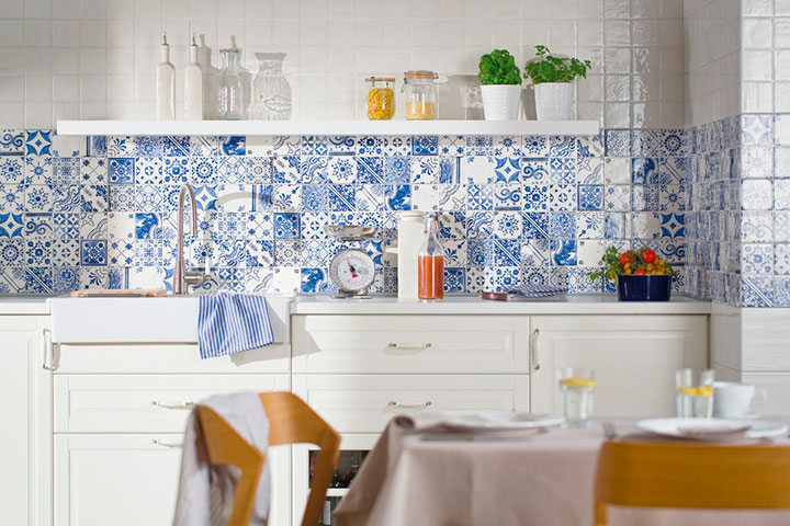 - Терралья. Після завершення процесу виготовлення плитка має природну біле забарвлення. При потребі візерунок наносять на поверхню. Фартух для кухні з терральі має дуже ошатний вигляд.