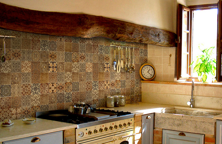 Прованс і кантрі. На такій кухні буде виглядати кахель з розписом під старовину або з сільськими візерунками. Кольори повинні бути природними: бежевий, жовтий, білий.