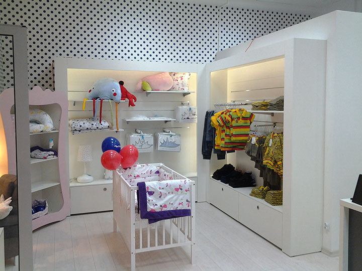 Спеціалізований бутік для малюків або підлітків дозволяє дизайнерам фантазувати в різних напрямках. Однак в такому магазині не повинно бути кричущих кольорів. Їх потрібно замінити світлими, спокійними тонами, хоча яскраві акценти теж вітаються. Приміщення повинно бути просторим і добре освітленим.