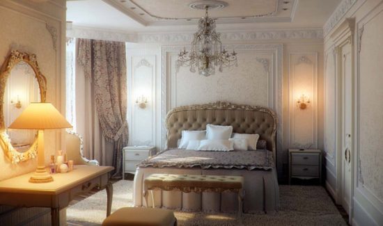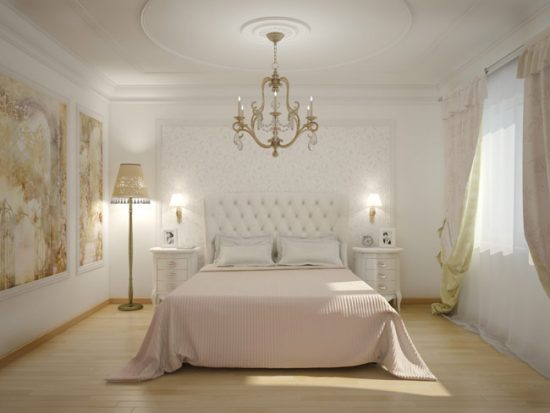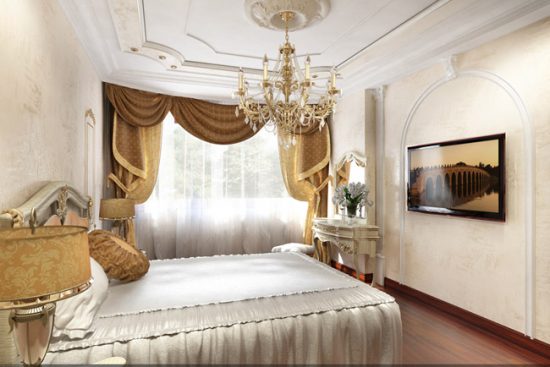 Порада. Щоб точно відтворити в своїй спальні класичний стиль, віддавайте перевагу ліпним елементам не з поліуретану, а з природного гіпсу – вони виглядають набагато природніше.