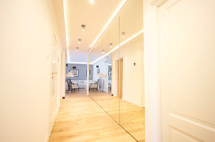 - Дзеркало – це не тільки естетична, але і практична річ. Може висіти окремо на стіні або вбудовуватися в шафу. Дзеркало збільшує простір, а також робить кімнату світліше і яскравіше.