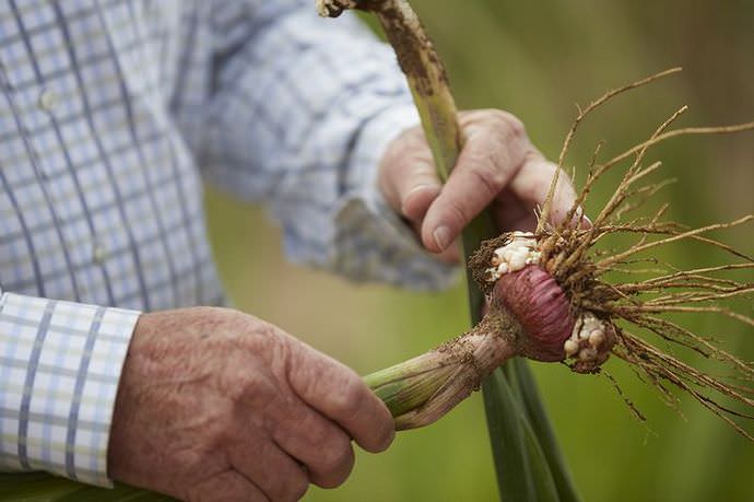 Зібраний посадковий матеріал очищають від ґрунту, відокремлюючи молоді цибулинки. Пошкоджені і заражені екземпляри сортують від здорових і спалюють. Листя після збору цибулин теж знищують.