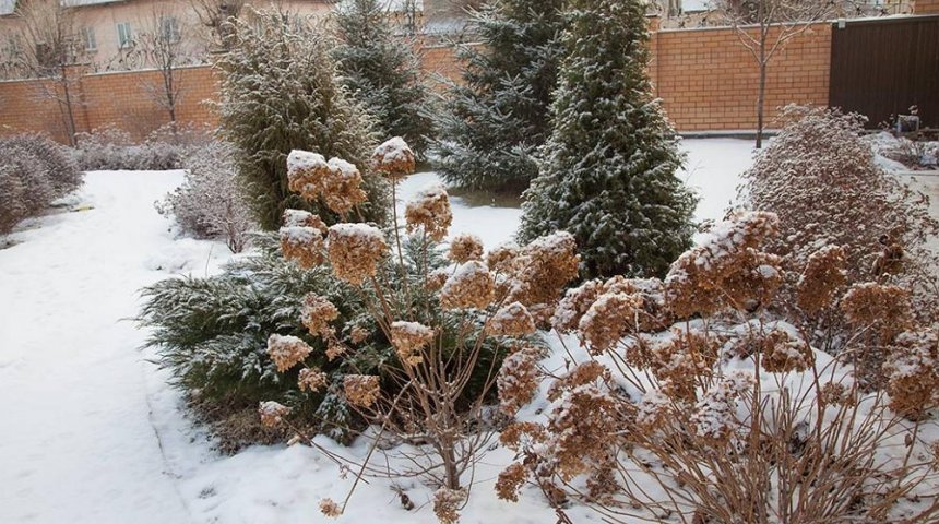 Восени обов'язково потрібно видаляти всі відцвілі (сухі) соцветенія, інакше взимку під вагою снігу кущі гортензії можуть просто зламатися. А також не заважає провести санітарну і проріджувати обрізку.