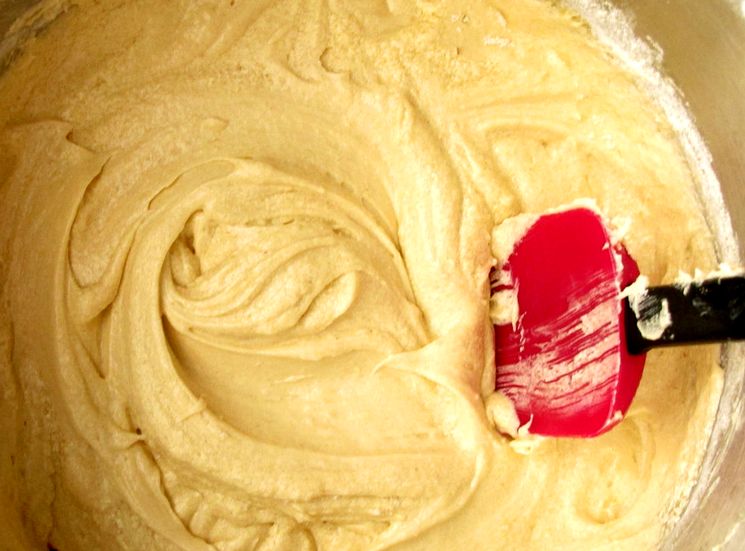 Як тільки тісто збільшилася вдвічі, в нього ввести перетерту з цукром і яєчними жовтками однорідну масу, розм'якшене вершкове масло і все перемішати прямо в ємності кулінарної лопаткою. Дістати з холодильника остиглі білки і, туго збивши їх міксером, обережно ввести в тісто. Відразу ж поступово підмішати що залишилася половину борошна, сіль, ванілін і, накривши рушником, залишити підходити до подвоєння обсягу в тепле місце.