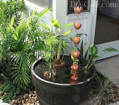 Багато дачники люблять насолоджуватися дзюрчанням води і спеціально для цього створюють на ділянках фонтани і струмочки. Але є варіант набагато простіше – дощові ланцюга. Правда, слухати мелодію стікають струменів ви зможете тільки під час дощу, однак найчастіше для розслаблення цього цілком достатньо. Зате є шанс заощадити на відсотках і замінити їх оригінальним, досить рідкісним в наших краях декоративним елементом, який одночасно збирає воду з даху і демонструє красу її руху всім, хто знаходиться поблизу.