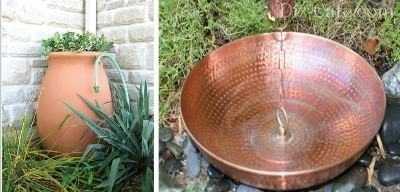 Найпопулярнішою моделлю дощової ланцюга вважається конструкція з металевих мідних горщиків, що нагадують квіткові кашпо, так як вона органічно виглядає в будь-якому ландшафті