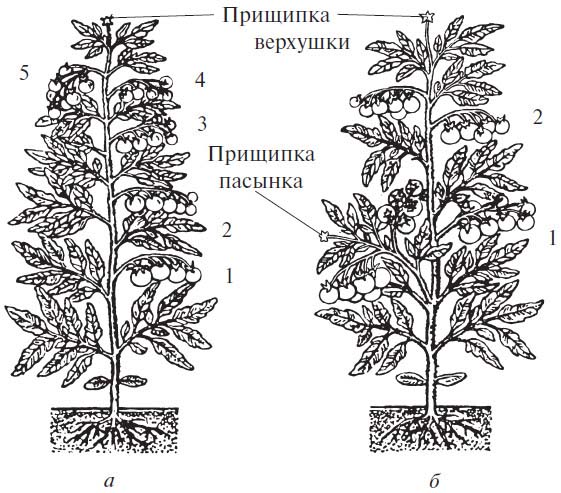 - якщо на одному кущі помідор росте багато плодових кистей, то частина з них доведеться виламувати, що трохи зменшує врожай, але прибирання стиглих плодів відбудеться значно швидше. На правильно сформованому рослині ростуть не більше п'яти плодових кистей, які забезпечать урожай повністю дозрілих плодів.