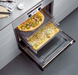 Деякі виробники випускають вбудовані духовки з функцією СВЧ, тому є можливість готувати в них, як і в мікрохвильовій печі: тости, гарячі бутерброди, розігрівати блюда дуже швидко. І все це одночасно, адже габарити шафи більше, ніж у мікрохвильовки.