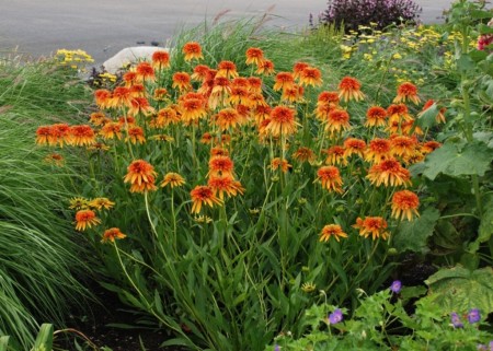 У садових квітниках ехінацея виграшно виглядає поряд з декоративними злаками, ромен, монардой, гипсофилой метельчатой, агастахе, дербенника, деревієм, флоксами, осінніми айстрами.
