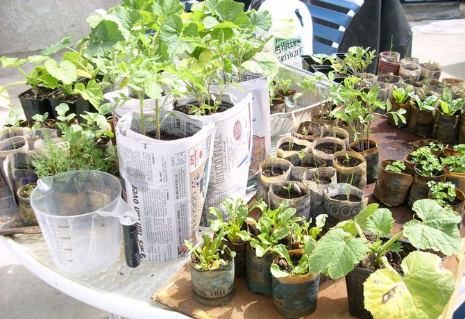 Під кожен вид розсади можна за допомогою різних ємностей і газет спорудити склянки різних розмірів (за обсягом, діаметру, глибині).