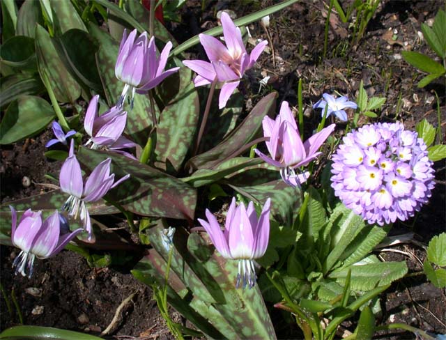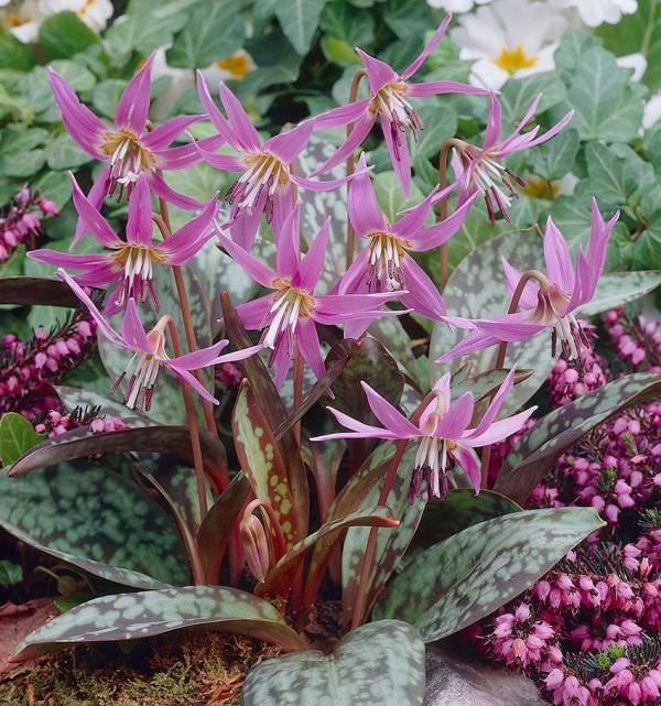 Крім іншого, хорошими сусідами для Ерітроніум стануть невисокі чагарники: ялівці, кизильники, падуболистная магония. Можна зробити посадку тих рослин, які в природі ростуть разом з Кандик: печіночниця, Трілліум.