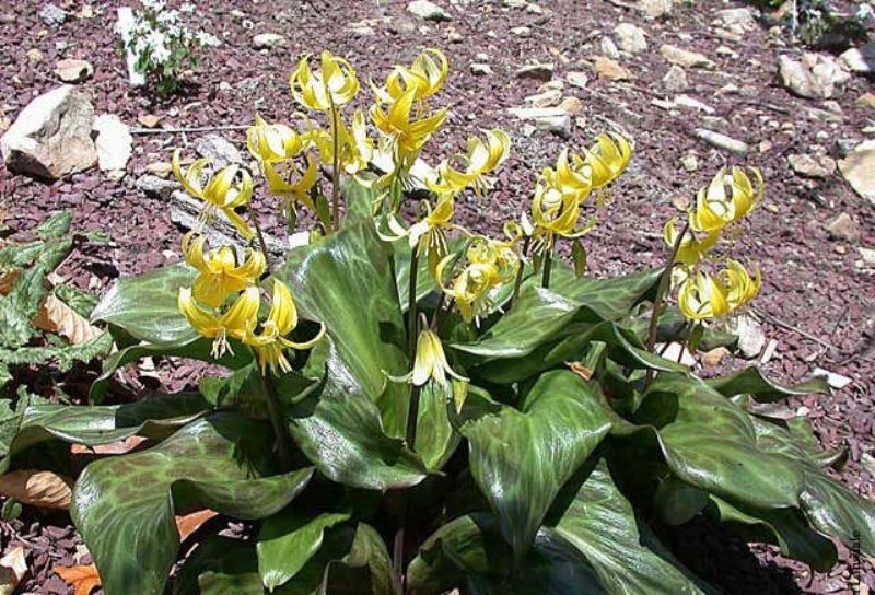 В альпінарії часто здійснюється посадка таких видів, як Ерітроніум сибірський, кавказький, японський, відвернута, туолумнійскій, американський, Гендерсона.