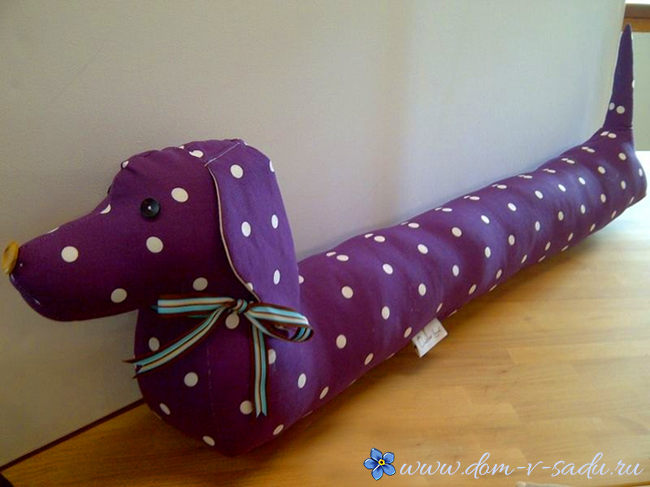 У такси є велика перевага – її довге тіло, яке дозволяє їй залазити в нори. Його можна використовувати і в повсякденному житті для створення затишку в квартирі. Зшийте таксу для захисту від протягів, які проникають крізь двері. У вас буде практична іграшка, тим більше, що форма собаки з тканини для подушки від протягів дуже проста.