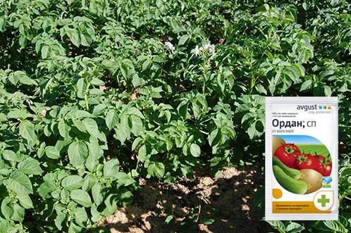 Ефективний Ордан СП і від хвороб цих важливих городніх культур: пероноспорозу, борошнистої роси, плямистості білої та бурої, сірої гнилі. На початкових стадіях розвитку культури обробляють препаратом для профілактики інфікування, після – через кожні 1-1,5-2 тижні. Норма витрати препарату – для картоплі 40 мл на кв. м, для цибулі – 40-60 мл на кв. м. Останню обробку фунгіцидом проводять за 3 тижні до збирання врожаю.