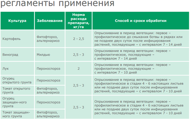 - Надає потрійне комплексний вплив на оброблювані рослини: попереджає зараження, знищує патогени, лікує і відновлює пошкоджені тканини.